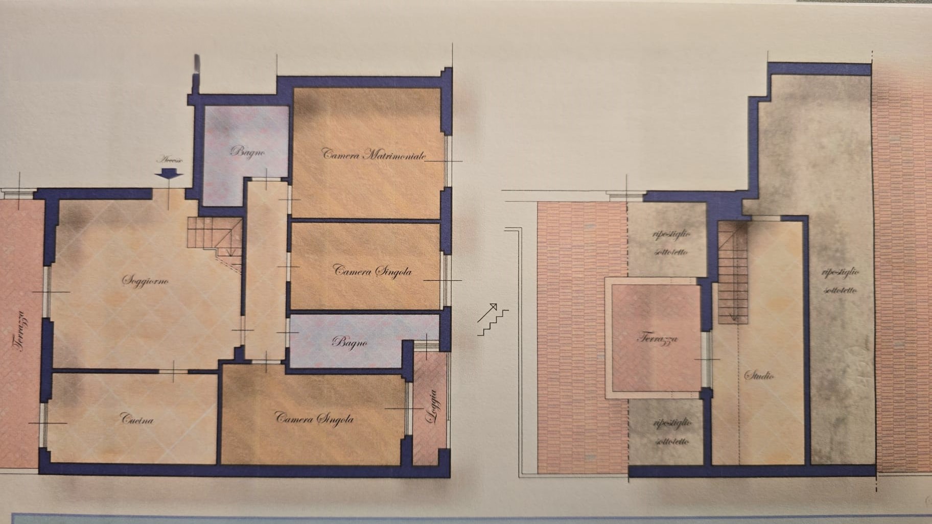 Ottime rifiniture, infissi nuovi, pavimenti in cotto e parquet.