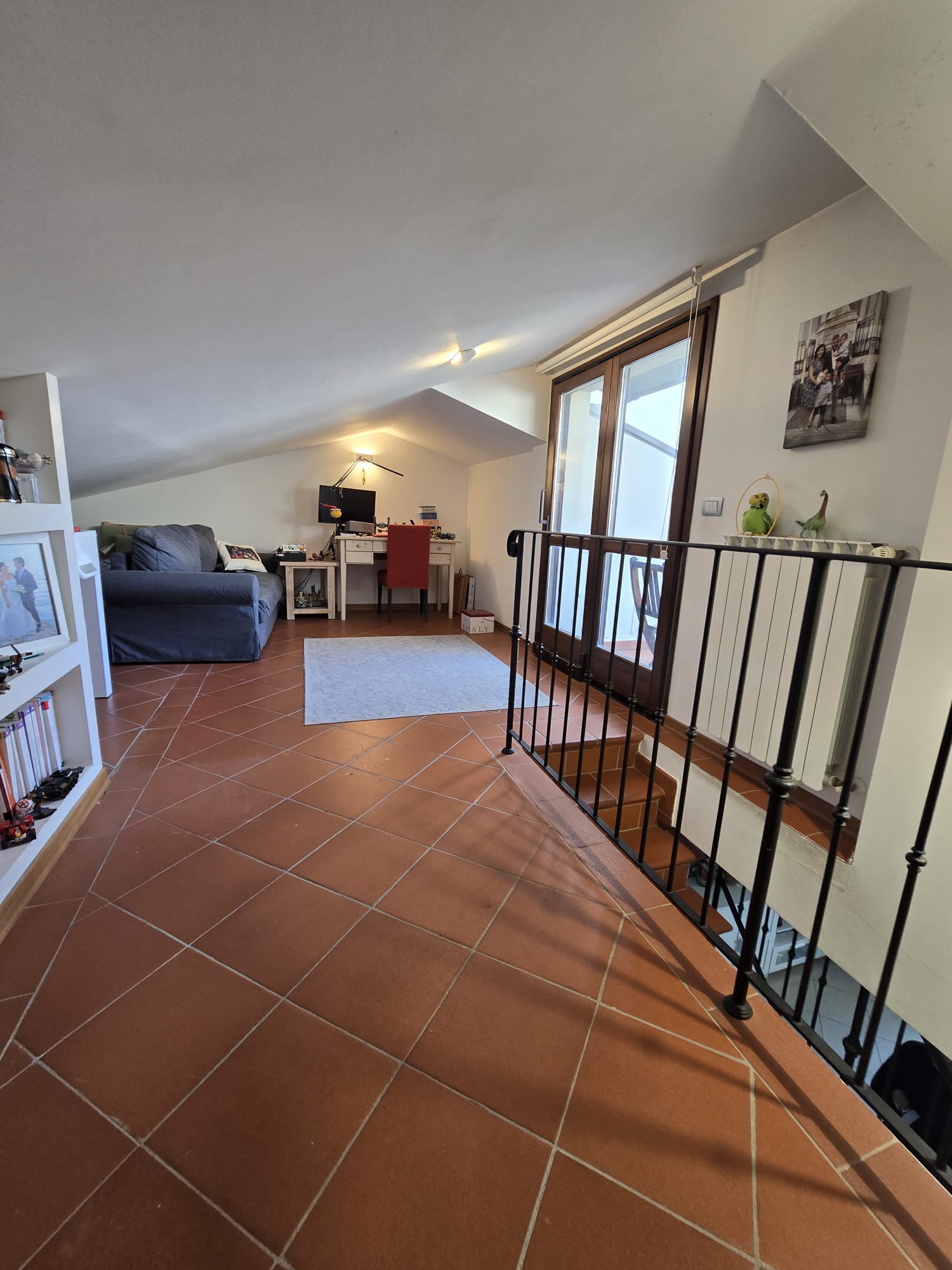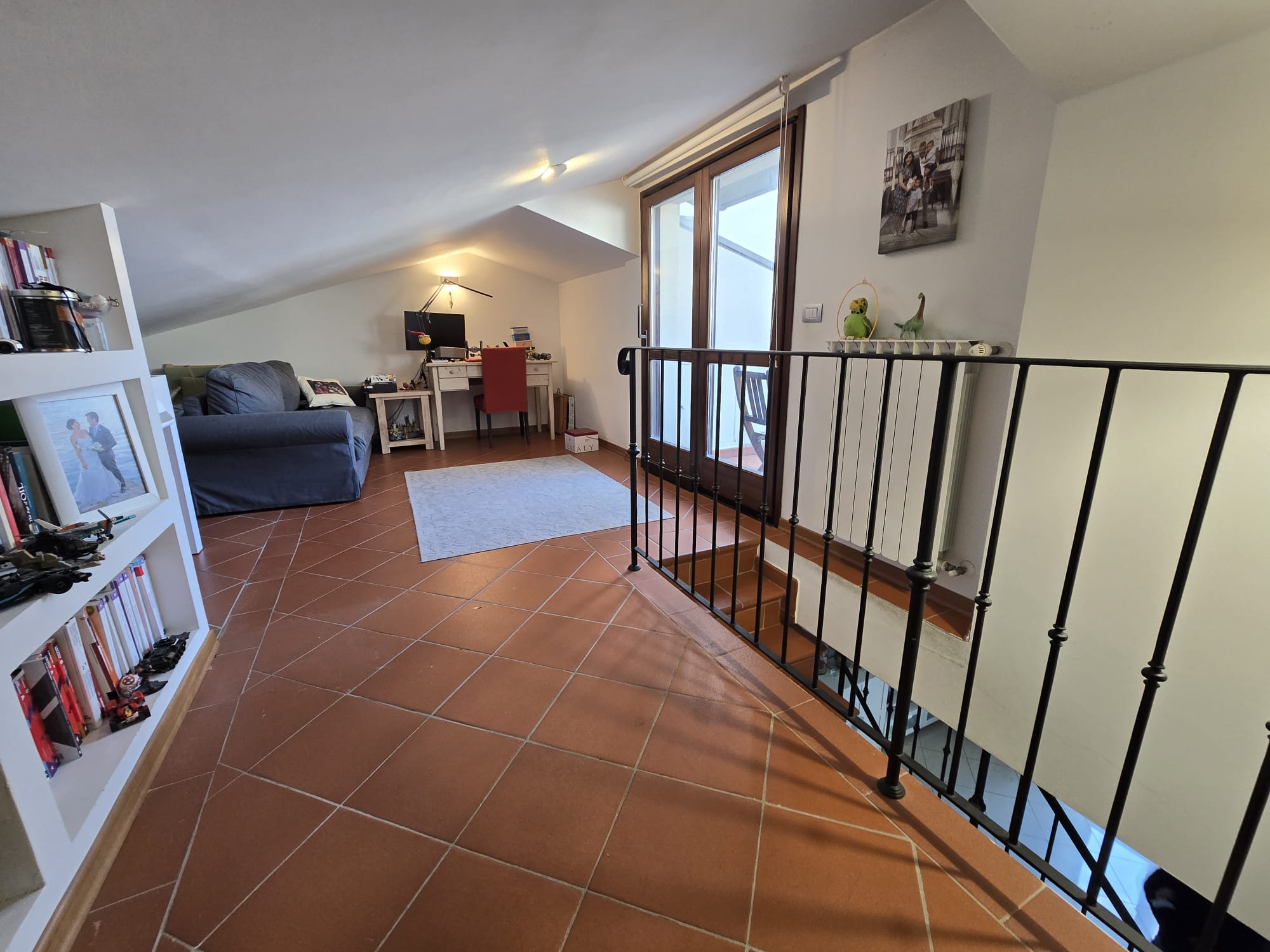 Si tratta di un ampio 5,5 vani posto al secondo ed ultimo piano con ascensore, sviluppato su due livelli: troviamo una bella zona giorno con porta finestra con accesso a terrazzino, cucina abitabile, una bella camera matrimoniale, due camere singole, da una delle quali si accede ad un loggiato coperto comodo da adibire a zona lavanderia, e DOPPI SERVIZI di cui uno finestrato. Al piano superiore, invece, troviamo un comodo vano studio, utilizzabile in svariati modi dalla stanza studio alla stanza hobby e una piacevole terrazza a tasca per godersi momenti conviviali e di relax.