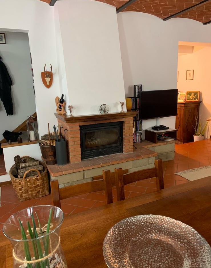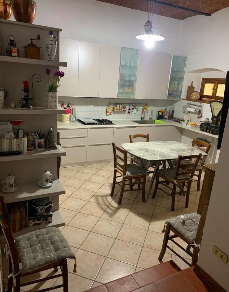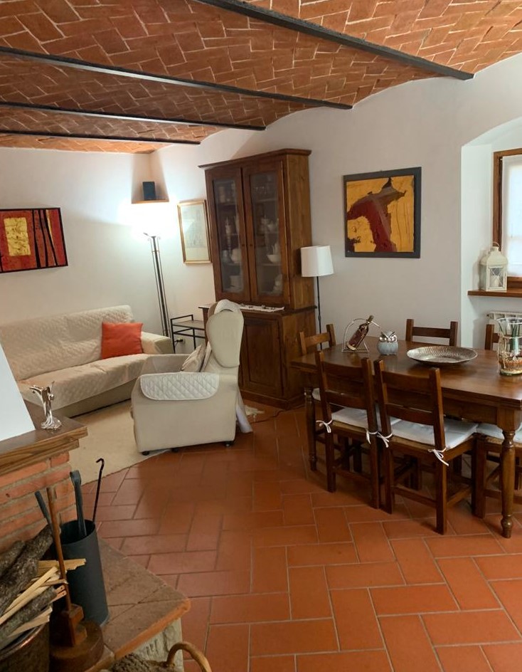 al piano terra troviamo una bella zona giorno con CAMINO, pavimenti in cotto e soffitto a travi, grande cucina abitabile, un comodo ripostiglio e un primo bagno.