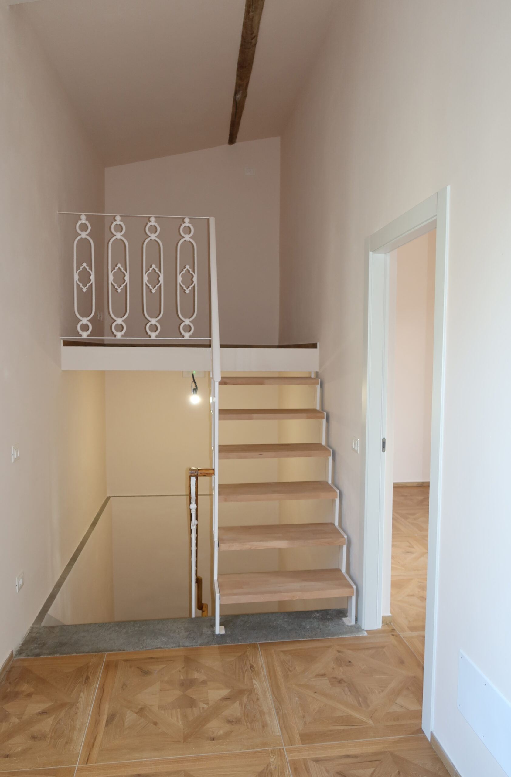 Proseguendo la scala in pietra è stato ricavato un comodo soppalco, ideale per stanza hobby o studio